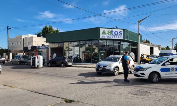 Según empleados del comercio, el choque se habría originado porque otro vehículo “cerró” al Corsa mientras circulaba, provocando la pérdida de control.